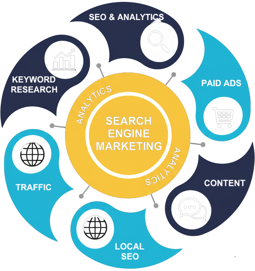 I provide complete digital marketing solutions including SEO (Search Engine Optimization), SMM, SEM, Content Creation, Web Design, Email Marketing, and Online Branding to help businesses grow online